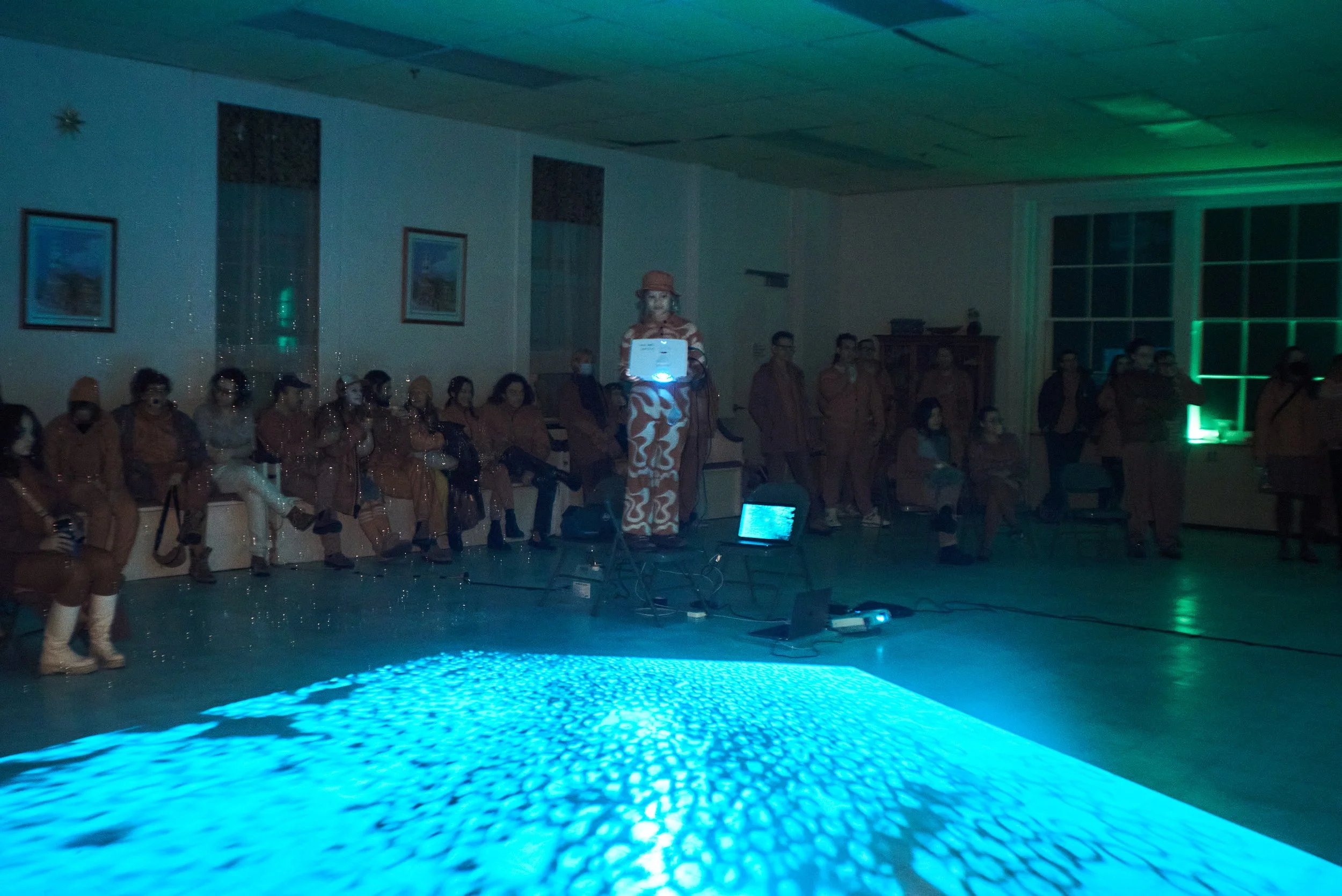 2-channel video installation activation with bubbles and dashi service, by Tree+Oyster at coLAB Arts in New Brunswick, NJ on February 17, 2024.
